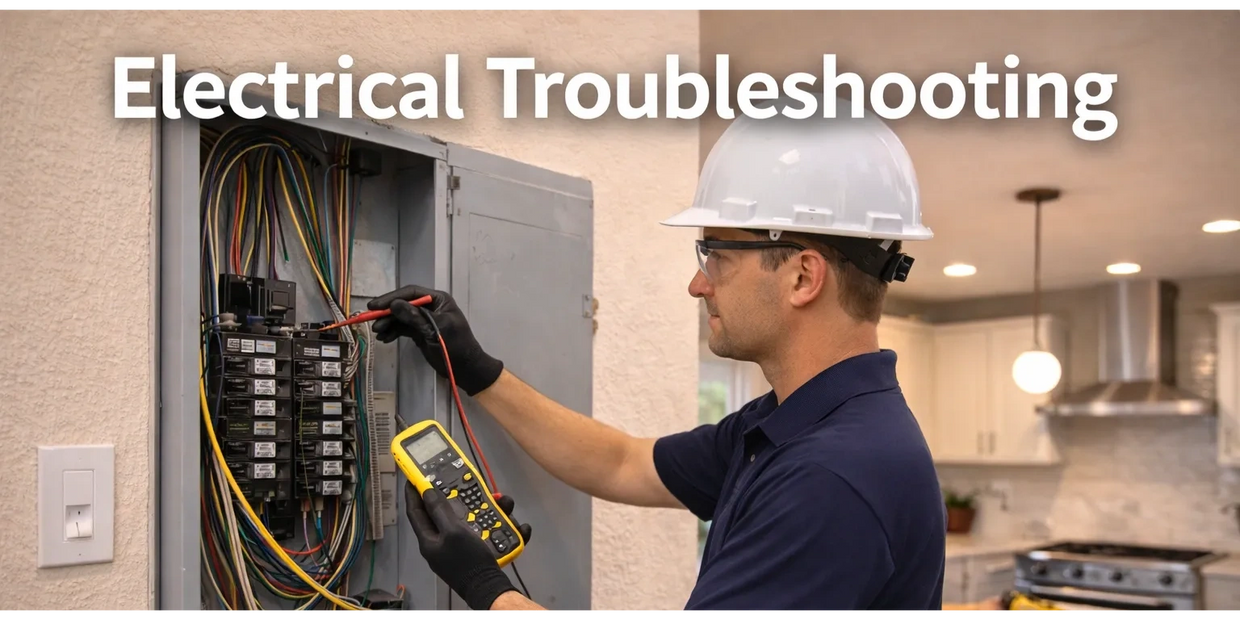 Electrical troubleshooting is the process of identifying why an electrical system, circuit, or component is not functioning as intended. This involves inspecting wiring, panels, breakers, outlets, switches, and connections to locate faults that are not immediately visible.
